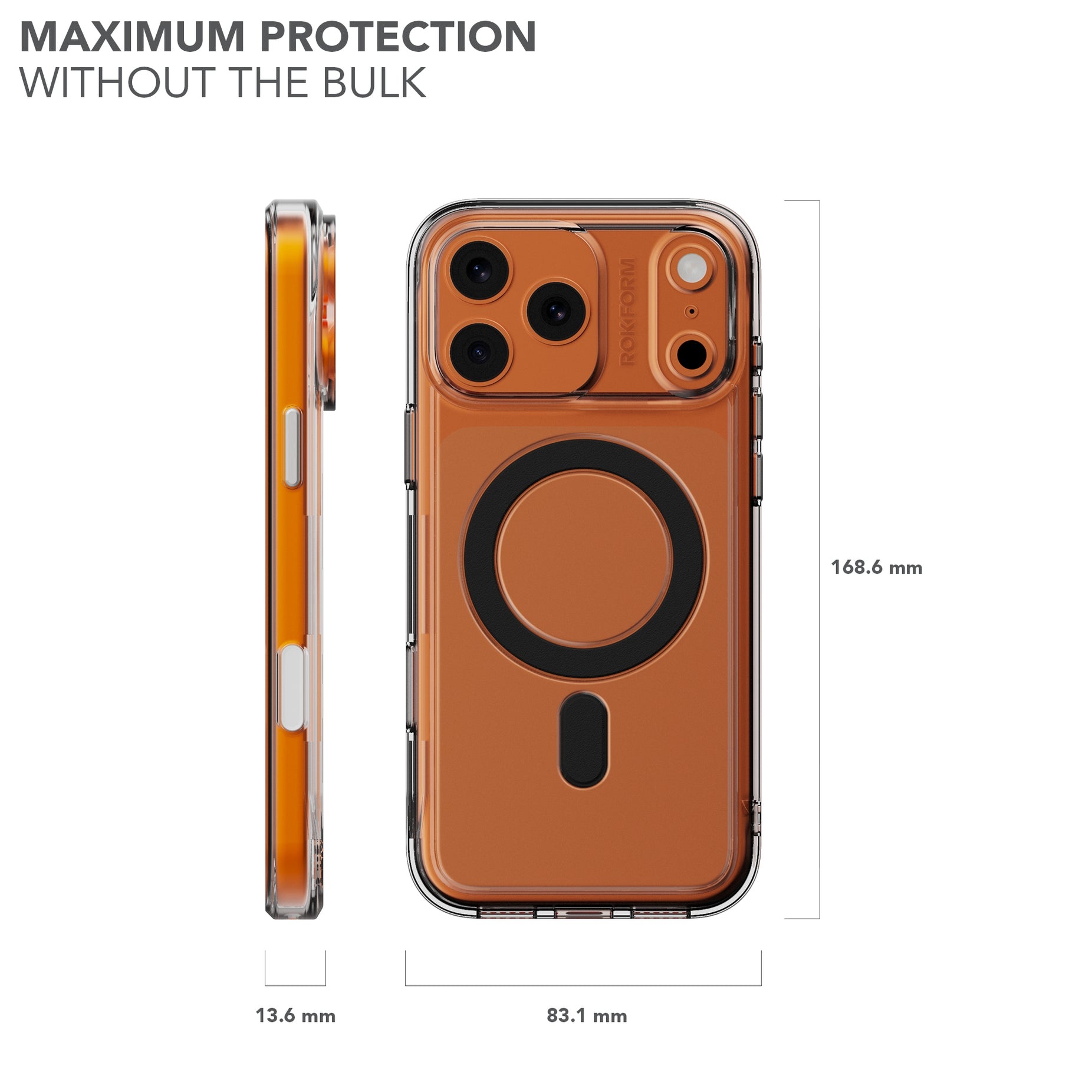 MAGMAX™ biedt 2-3x sterkere magnetische grip met N52-magneten, zodat je alle magnetische accessoires van Rokform zonder problemen met deze iPhone 17 Pro Max Slim Case kunt gebruiken.