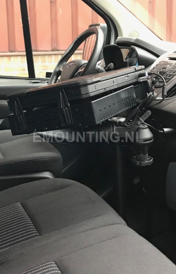 Zoals te zien op de foto's een solide en comfortabele oplossing voor professionals die dagelijks met bestelbus en laptop onderweg zijn. De Dell Rugged laptop veilig gemonteerd in de op maat instelbare RAM Mounts Toughtray.