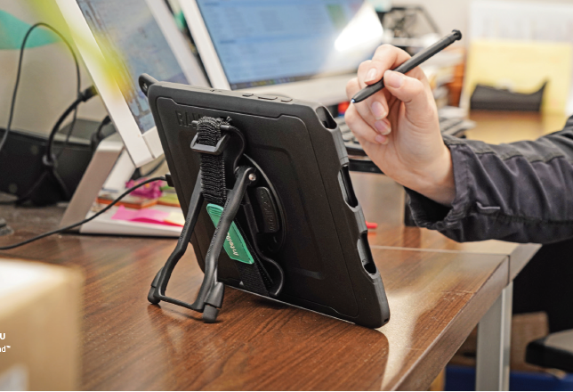 Deze tablet is standaard voorzien van dockingcontacten aan de zijkant (lange zijde). De actieve houders maken hier een connectie mee (POGO-pins). U hoeft daarom niet met stekkertjes te rommelen om op te laden!