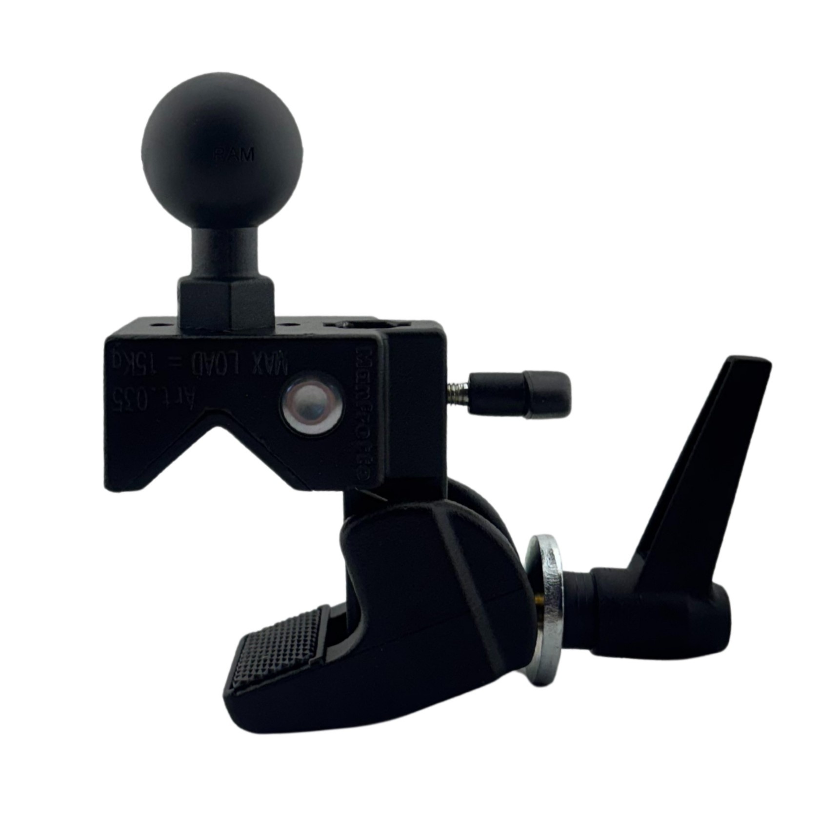 De meegeleverde Manfrotto klem is vervaardigd uit hoogwaardige aluminiumlegering en ontworpen voor een veilige grip op zowel ronde buizen (Ø10–60 mm) als vlakke oppervlakken (tot 50 mm dik). Dankzij het slimme, verwijderbare wigontwerp en geïntegreerde antislippads biedt de klem een uitzonderlijke grip zonder het oppervlak te beschadigen.