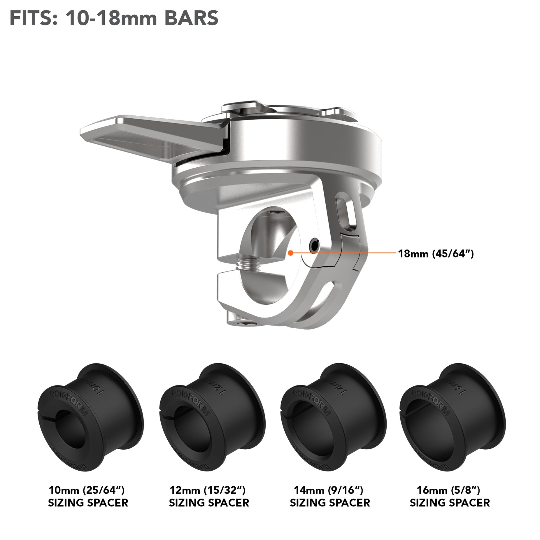 VEELZIJDIG: Onze stangtelefoonhouder past op staven in de maten 10 mm (25/64"), 12 mm (15/32"), 14 mm (9/16") en 16 mm (5/8").