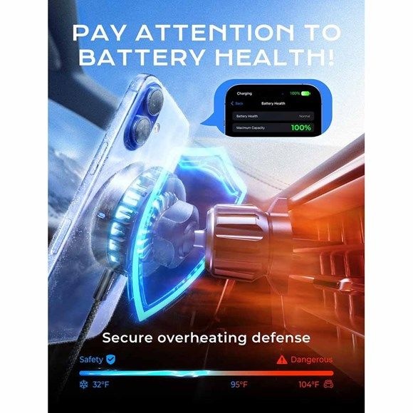 Wanneer een telefoon op de houder wordt geplaatst, start de ingebouwde ventilator automatisch. Je kunt deze ook zelf activeren door de touchknop bovenop de houder, met het sneeuwvloksymbool, licht aan te raken. Het laadgedeelte van de telefoon koelt dan snel af en het opladen kan doorgaan. Je zult deze functie zeker waarderen in de zomer, wanneer de telefoon op de houder staat, die hoog op het dashboard kan worden geplaatst en door de zon wordt opgewarmd.
