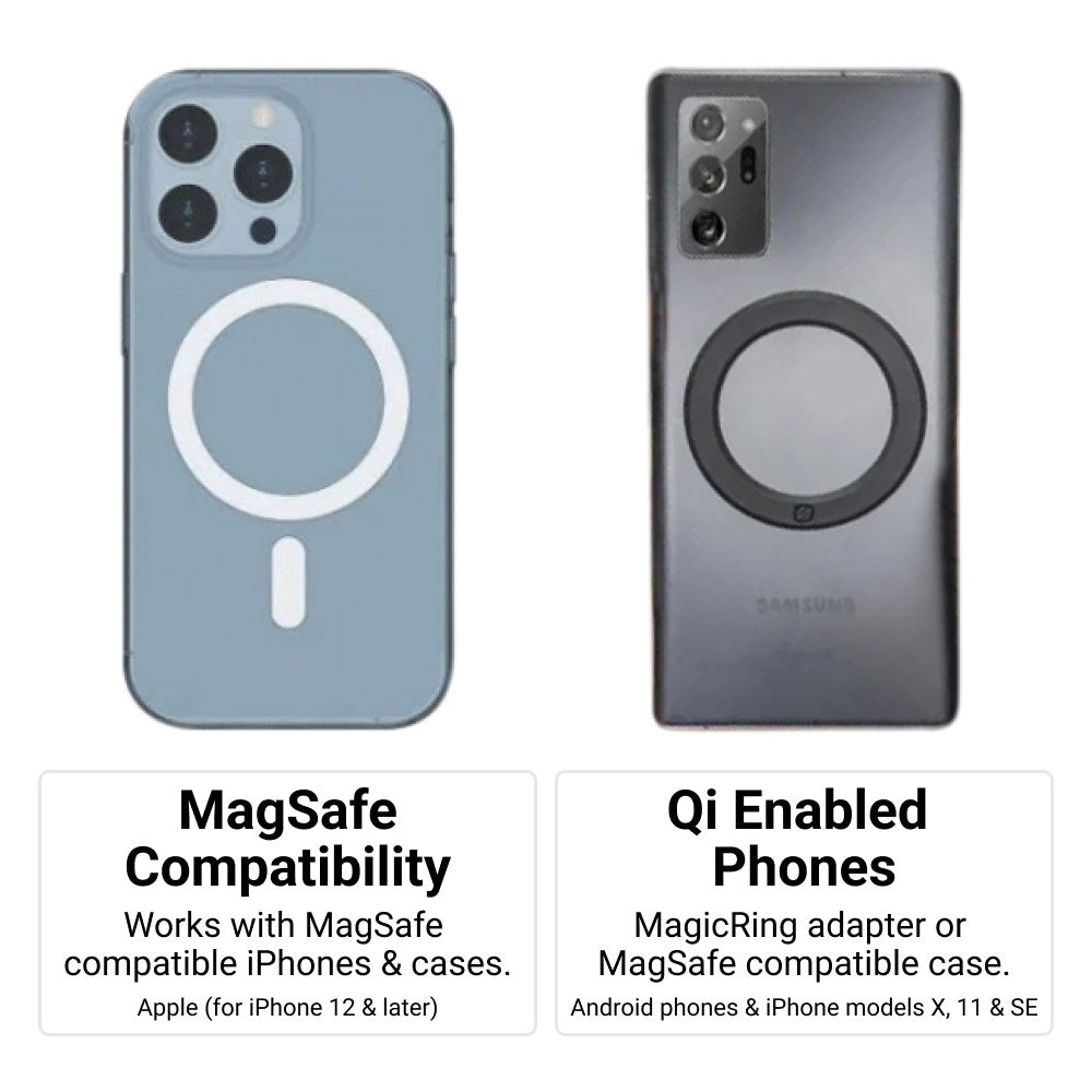 *Let op: MagicMount™ Elite Charge Amps is ontworpen om het beste te werken met iPhone-modellen met MagSafe (versie 12 en nieuwer); snel opladen wordt niet ondersteund met Android-telefoons of MagicRing-adapter.