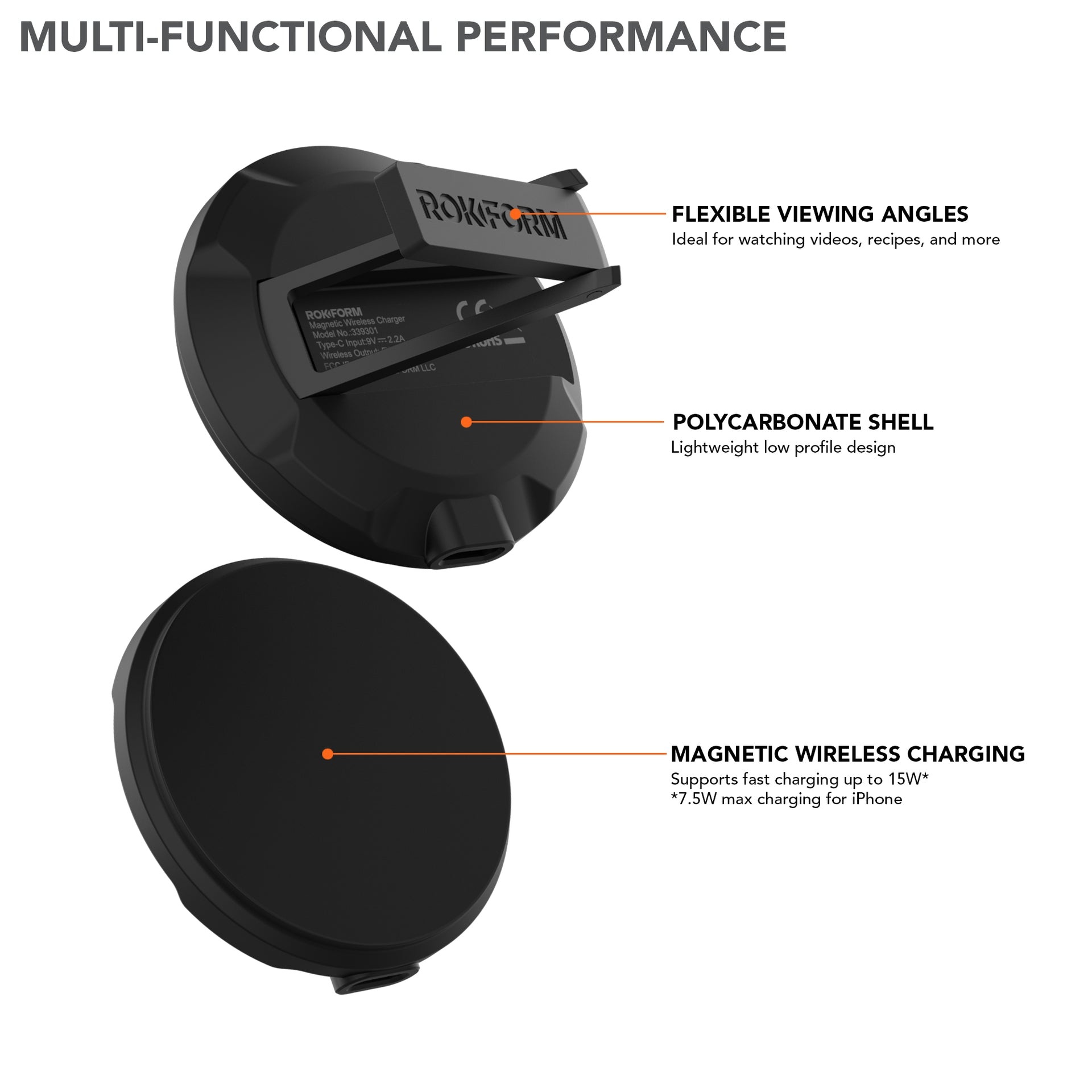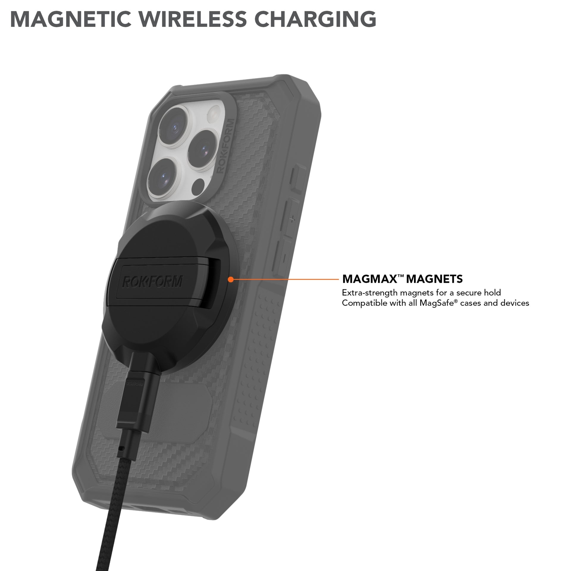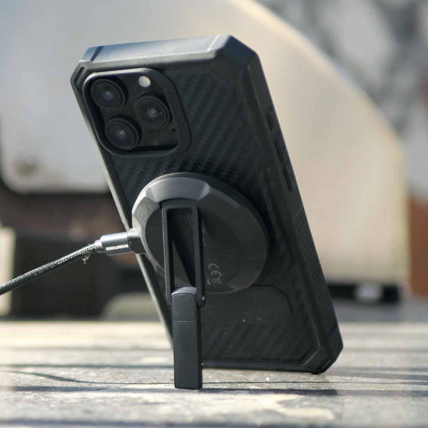 Waarom genoegen nemen met het gewone als je het buitengewone kunt hebben? Je telefoon verdient een troon – en dat is precies wat deze biedt. Onze gloednieuwe draadloze oplaadstandaard levert 15 W vermogen aan je telefoon, voor een stabiele en comfortabele ervaring tijdens het opladen. Alle Rokform MAGMAX™-compatibele hoesjes werken met de draadloze oplaadstandaard, waardoor ze het ultieme duo vormen.