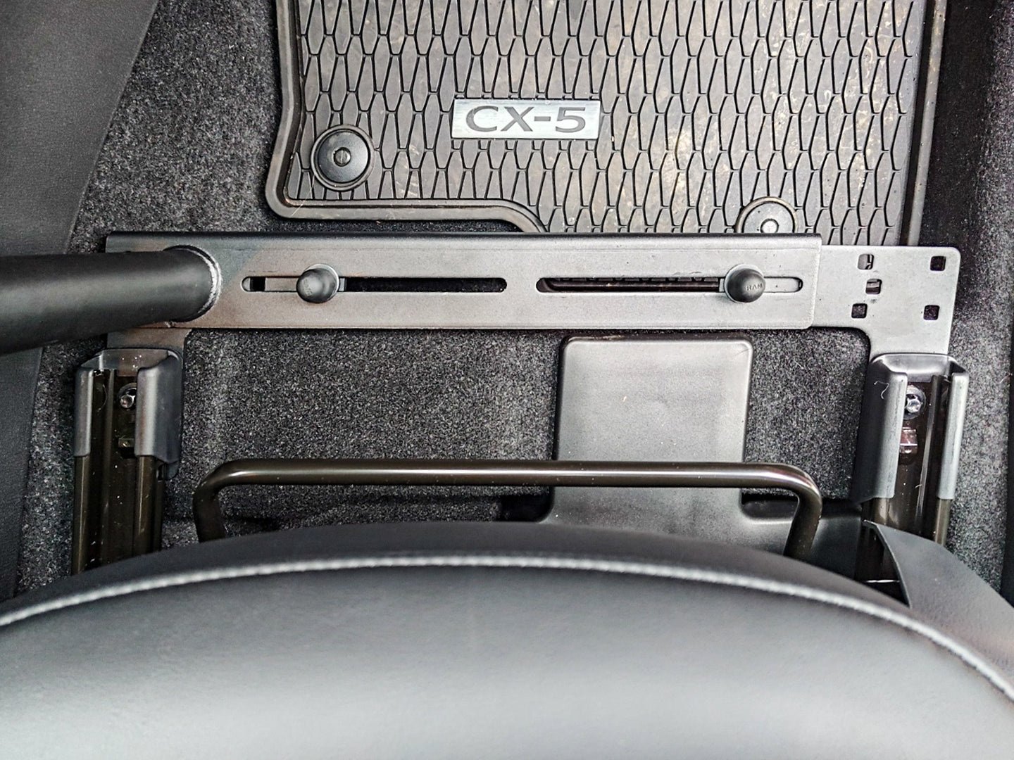 - Universele laptop voertuigmontage installeert met passagiersstoelbouten; boren niet nodig.