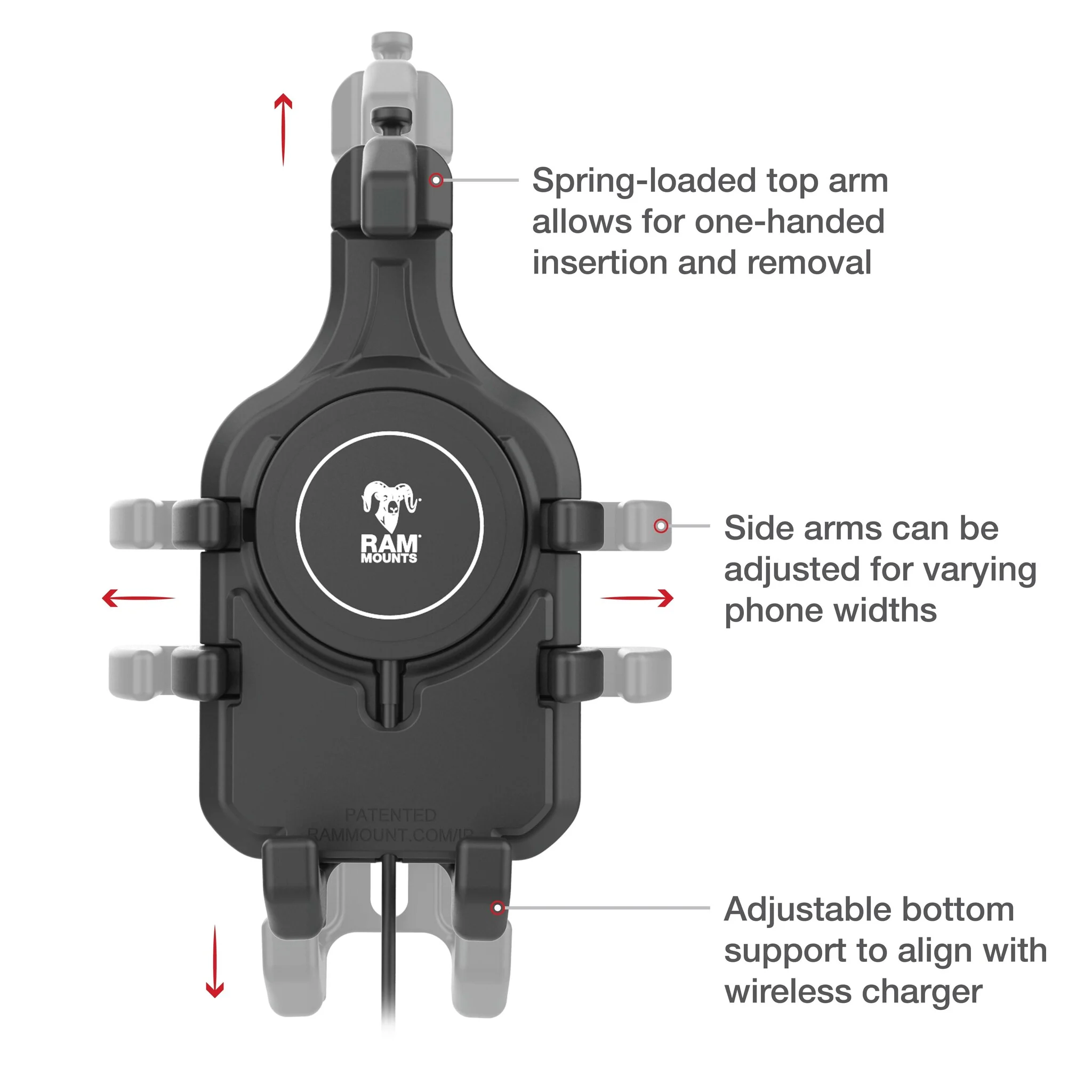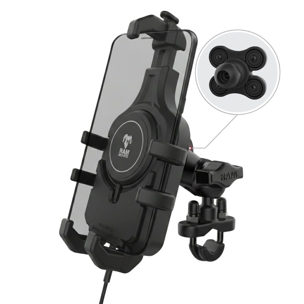 RAM Mount Quick-Grip™ Pro Qi2 15W Waterdichte Motor Telefoonhouder met U-Beugel en Trillingsdemper