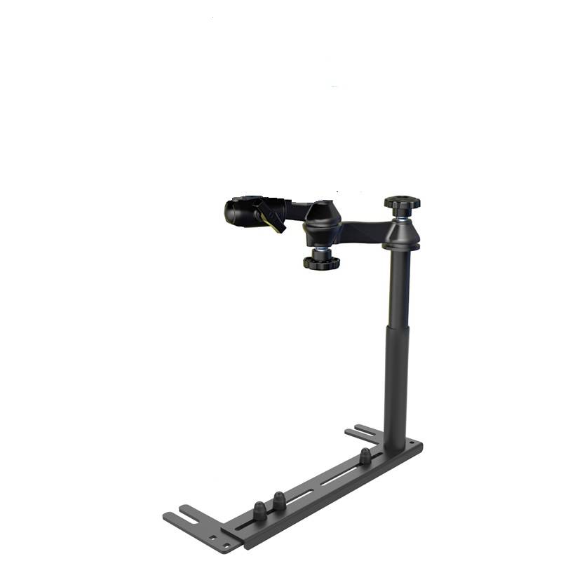 The RAM® Universal No-Drill™ features a heavy-duty steel mounting base designed to fit a variety of vehicles. Using the front bench or passenger side seat rail bolts as attachment points, existing hardware is used to secure the laptop mount base in the vehicle.