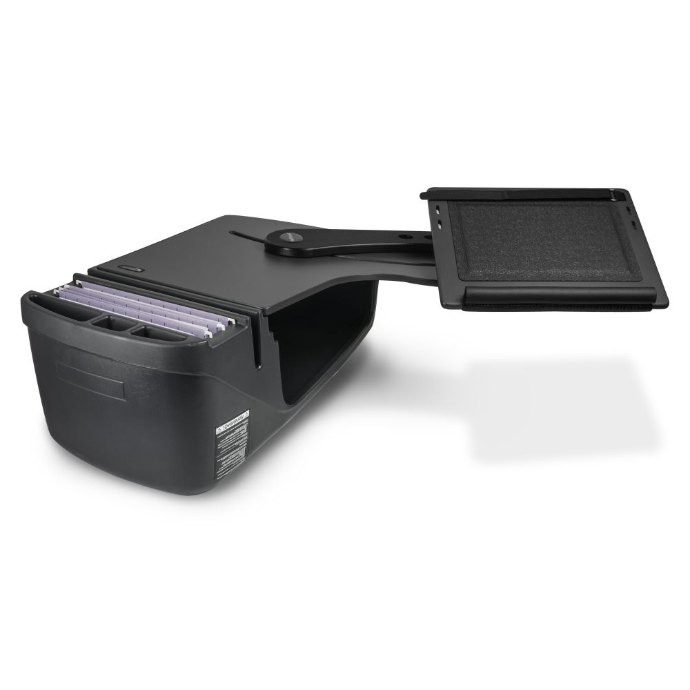 Werktafel en laptoptafel voor auto-kantoor (Mobile-Office) met veel bergvakken en 58 cm uitschuifarm met luxe instelbare laptop/tablet werktray. Is geschikt voor de achterbank van de auto (let op: werkplateau zit achter de bijrijderstoel).