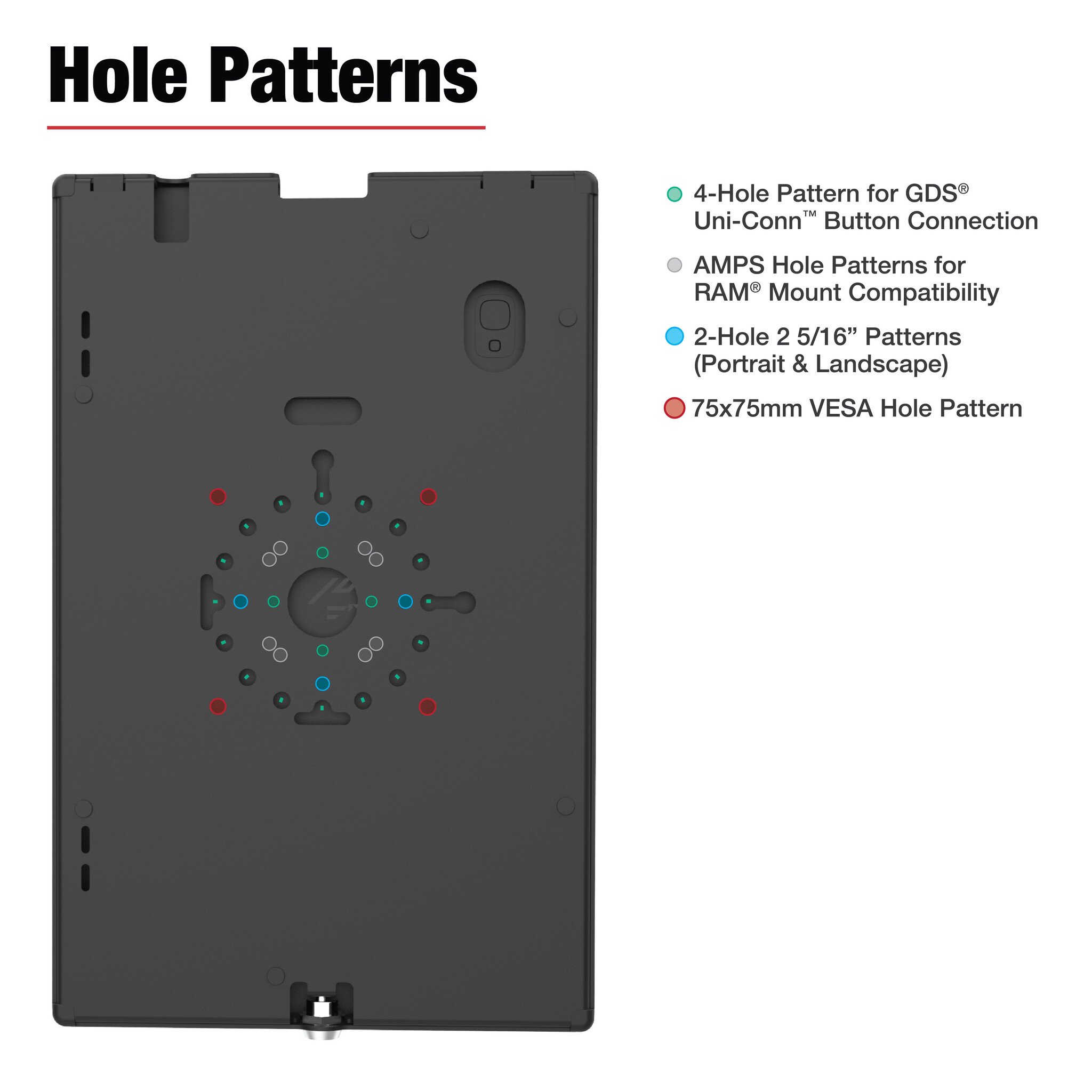 - Te bevestigen op RAM® kogelbevestigingen met VESA- en AMPS-patroon; of vlakke montage