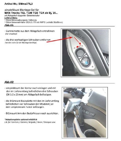 Arat simpleMount voor MAN Trucks TGL TGM TGS TGX ab Bj.´20