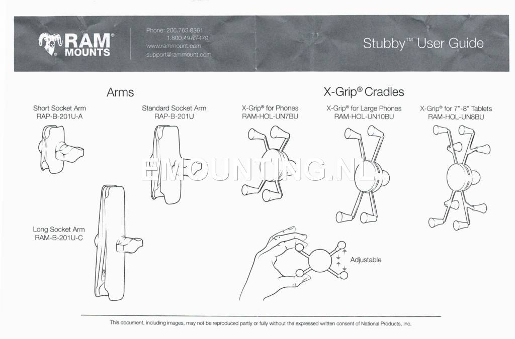 De klemhouderset met composiet snelklem en montage kogel maakt een universele montage base voor tal van RAM Mount houders en toepassingen.