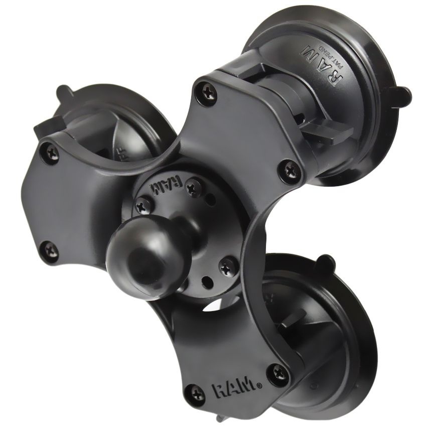 - RAM® Twist-Lock™ triple zuignapbasis is ideaal voor voorruiten en andere niet-poreuze oppervlakk